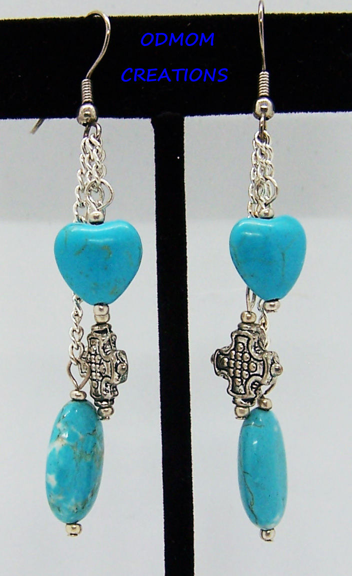 Turquoise Dyed Howlite Oval Cross Heart Dangle